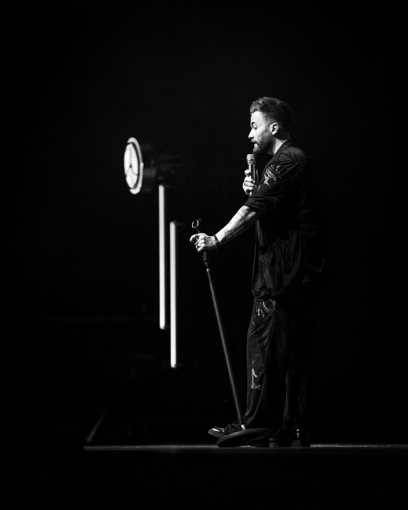Dans Pas comme eux, l’humoriste propose bien plus qu’une succession de sketches : il partage son parcours, son regard sur le monde et ses expériences personnelles, dans un format vivant et incarné.